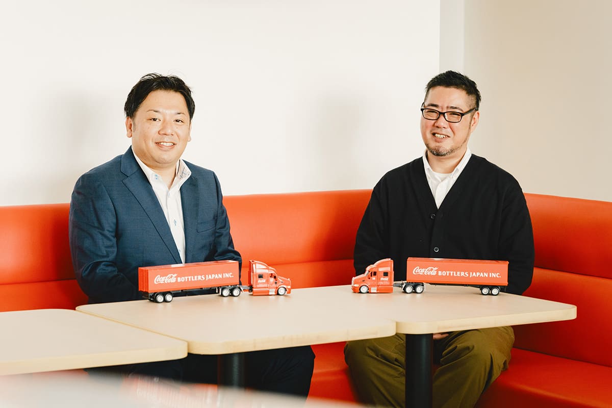 トラックドライバーの時間外労働規制の変更により、深刻な人手不足とコスト上昇が懸念されている「物流の2024年問題」。全産業で物流プロセスの見直しが求められている中、当社ではデジタル技術を活用した大規模な変革に取り組んでいます。従来は紙ベースで進められていた配送管理業務をスマートフォンアプリに集約し、ペーパーレス・チェックレス化を実現。配送に関わる負荷や時間を削減することで、当社内のオペレーションはもちろん、パートナー企業の業務効率化にも寄与しています。この変革をリードする関口修司(物流企画)と坂口雅紀(システム部門)に、プロジェクトの現時点での成果と今後の展望を聞きました。
