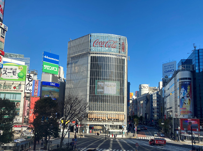 ---東京都渋谷区の渋谷スクランブル交差点とルートカー