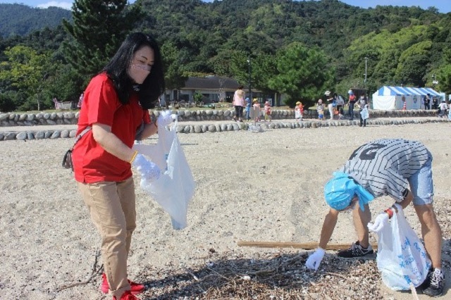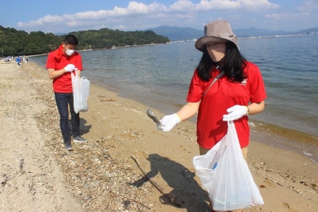 10月9日(土)に、コカ・コーラ ボトラーズジャパンが参画している「GREEN SEA 瀬戸内ひろしま・プラットフォーム(GSHIP/ジーシップ)」ならびに、「海洋ごみ問題ジブンゴト化プロジェクトin広島」の一環として行われた広島県の宮島包ヶ浦自然公園の清掃活動に、当社執行役員荷堂真紀、他社員が参加しました。