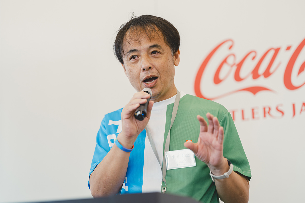 まずはファミリーマート社からマーケティング本部サステナビリティ推進部の小川和之さんが登壇。ファミリーマート社がどのような取り組みを行っているのかをご紹介いただきました。