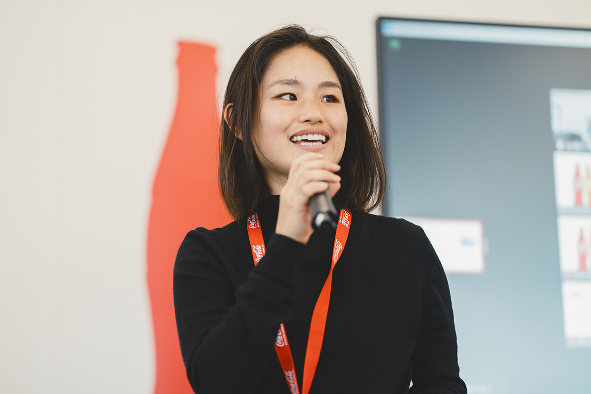 LGBTQ+関連の取り組みとしては、用語の理解や知識の定着をめざす全従業員を対象とした研修、6月に「PRIDE WEEK」として社内でのイベント開催や、ファミリーマート社はじめ各社とのコラボレーションも行っています。林は、現在までに約220名が登録しているLGBTQ+とアライの有志による従業員ネットワークの立ち上げや飲料各社とパレードに参加した東京レインボープライドや各地域でのレインボープライドでの取り組みについても紹介しました。なお、当社では日本での職場におけるLGBTQ+関連の取り組みの評価指標である「PRIDE指標」でも、レインボー認定を3年連続[3]、ゴールド認定は4年連続受けています。