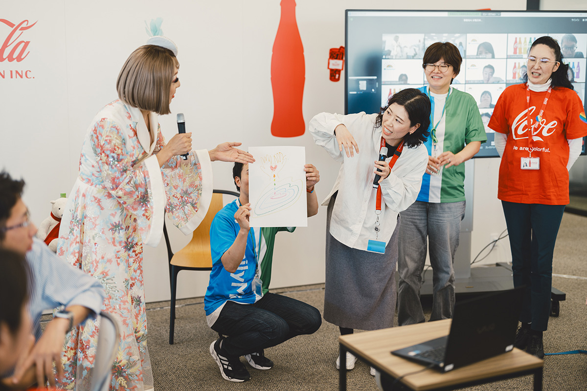 10月11日(金)の国際カミングアウトデーには、2社合同で「LGBTQ+アライメンバー協働イベント」を実施[2]。女装パフォーマーのブルボンヌさんを迎え、初年度となる昨年の行動目標である「知る」から一歩進んだ「動く」に取り組んだ各社のアクション紹介とともに、「アライの輪を広げる」プロモーションロゴのデザイン案について協議しました。そのイベントの模様をご紹介します。