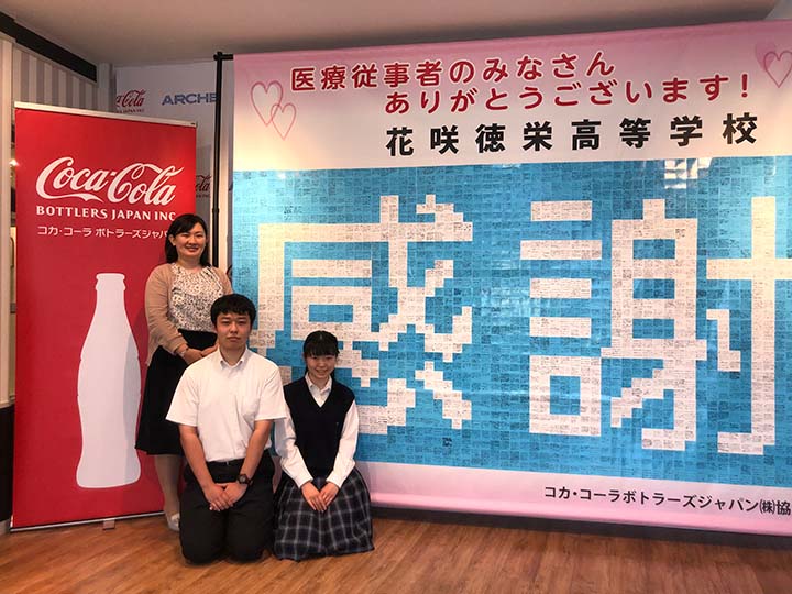 コカ・コーラ社製品の寄贈や、医療従事者へ向けた「メッセージモザイクアート」を作成・展示