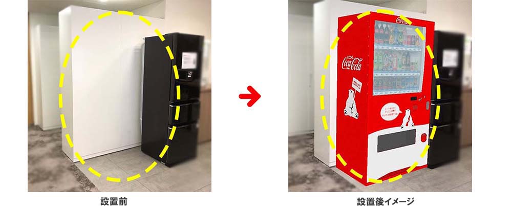 当社では、各チャネルにおいて、自動販売機やディスペンサー、クーラーやラックなどの機材の設置をお得意さまに提案する際に、ARを活用しています。