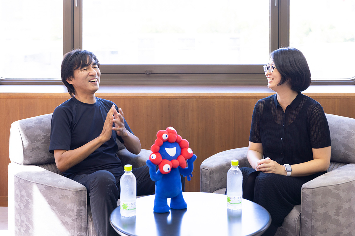 当日は、当社が大阪・関西万博でゴールドパートナーとして協賛するシグネチャーパビリオン「いのちめぐる冒険」の河森正治プロデューサーも参加。イベント終了後に当社サスティナビリティ企画部長の近藤彩子と、生物多様性保全や循環型社会の実現に向けた取り組みや考え、大阪・関西万博で実現したいことなどを語り合いました。