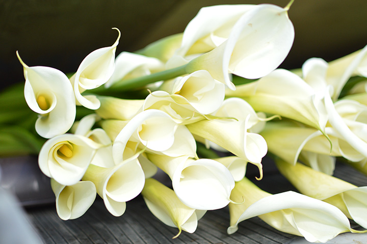 水生カラーは、和名をオランダカイウといい、アフリカが原産地(エチオピアの国花でもあります)となるサトイモ科の多年草です。水辺を好む水生カラーの生育条件は、房総の温暖な気候にぴったりで、小糸花卉(かき)園芸組合さまでは年間180万本のカラーを出荷しています。端正な気品が漂うカラーはウェディングブーケなどに好まれます。