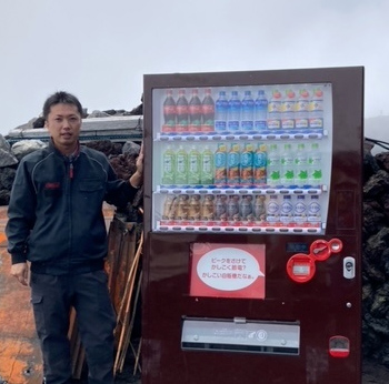 富士山頂までお越しの際には、ぜひ、当社の自動販売機をご利用ください。一緒に日本一高い場所に居る喜びを乾杯しましょう。