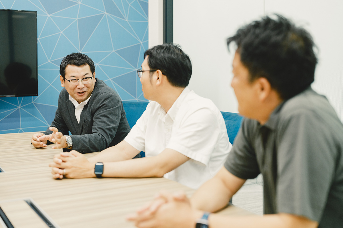 4本フォークタイプのトラック荷役対応自動運転フォークリフトを物流倉庫に導入する試みは国内初※。前例のないプロジェクトの背景にはどのようなねらいや思いが込められているのでしょうか。同プロジェクトを推進する和井田聡、佐々木明朗(ともにロジスティクス戦略グループ統括部所属)、細川聡一(エンジニアリンググループ統括部所属)の3名に聞きました。