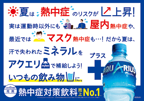 熱中症対策にはミネラルを含む「アクエリアス」がおすすめ