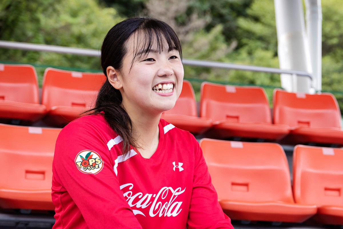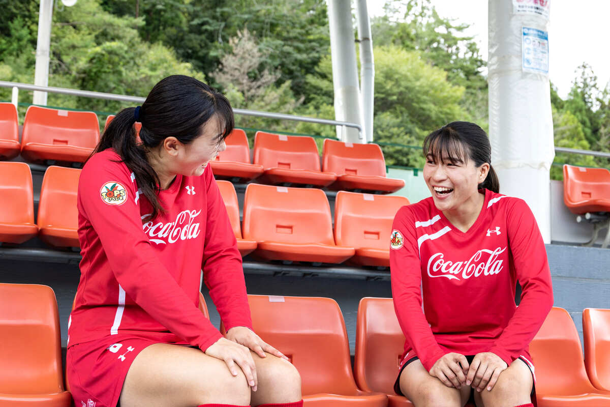 チームの若手注目選手である小早川志穂(フォワード)と中込紅莉(ミッドフィルダー)は、ともに日本代表に選出されている国内トップレベルの選手。当社では2022年入社の同期であり、業務ではともにチェーンストアのマーチャンダイザーを担っています。