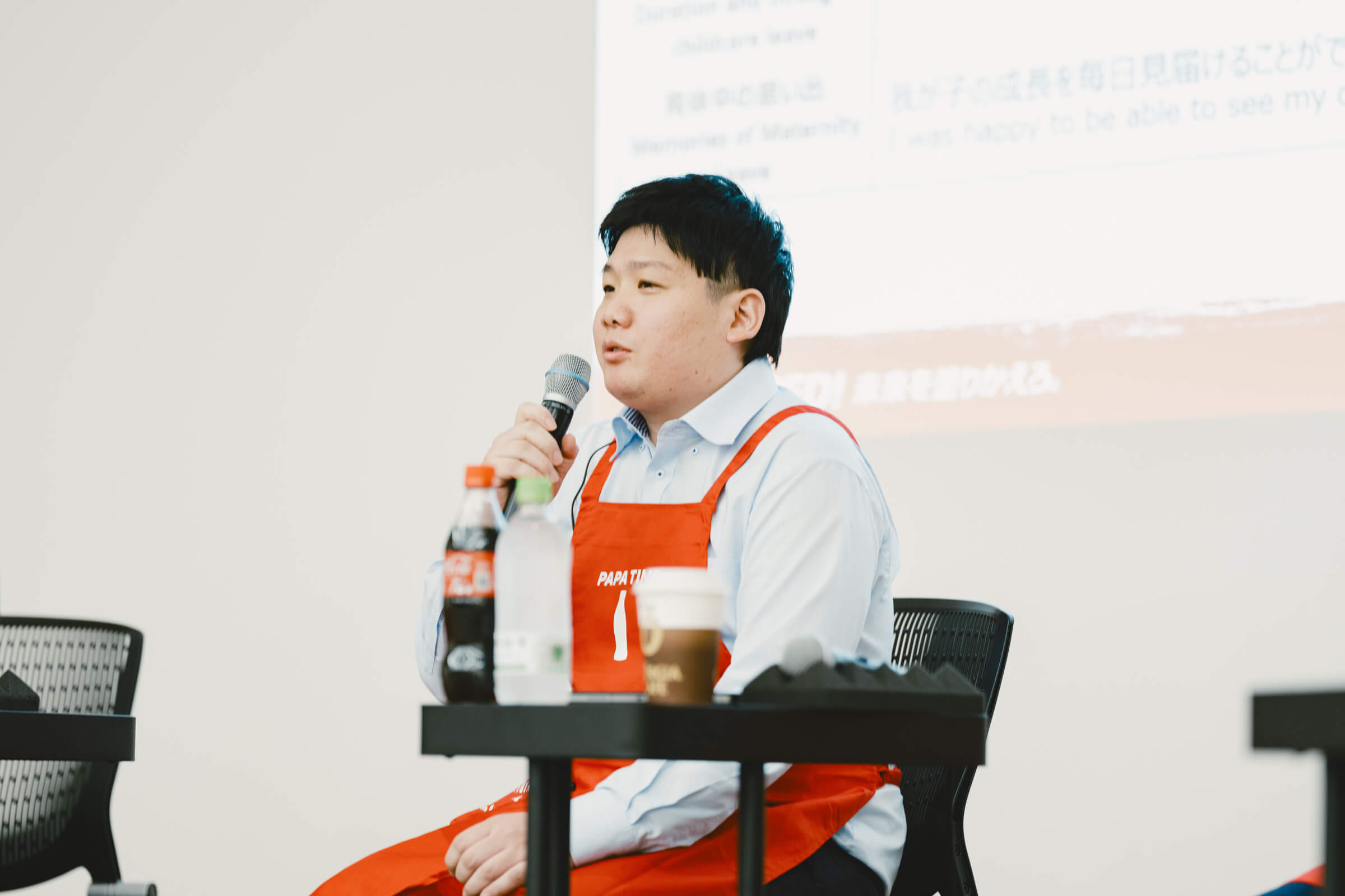カリン:私も、息子が誕生した際に人事本部長からパパエプロンをプレゼントしてもらいました。家事や育児をするタイミングでこのエプロンを着けると、良い切り替えになりますよね。