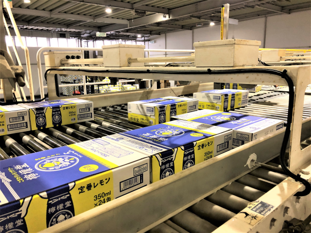 パッケージコンベアこれまでにアルコール製品製造ラインの導入を行ってきた埼玉、京都各工場のノウハウを活かすことで、小松工場でもライン稼働をスタートさせることができました。