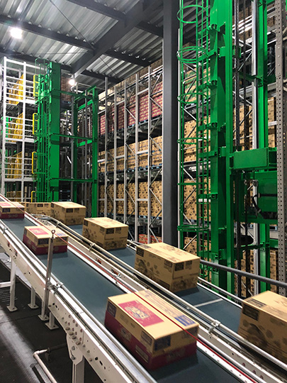 従来の約半分のスペースで製品を保管できる「高密度保管システム」という革新的な技術を導入していることが特徴です。