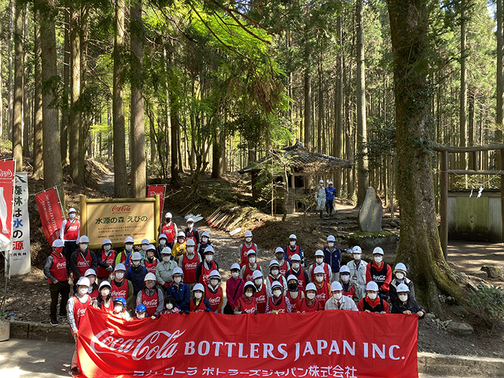 コカ・コーラ ボトラーズジャパンは、かけがえのない「水」を使用してビジネスを行う企業として、「2030年までに水使用量30%削減」および「2025年まで水源涵養率200%維持」の目標を掲げて水資源保護を推進しています。