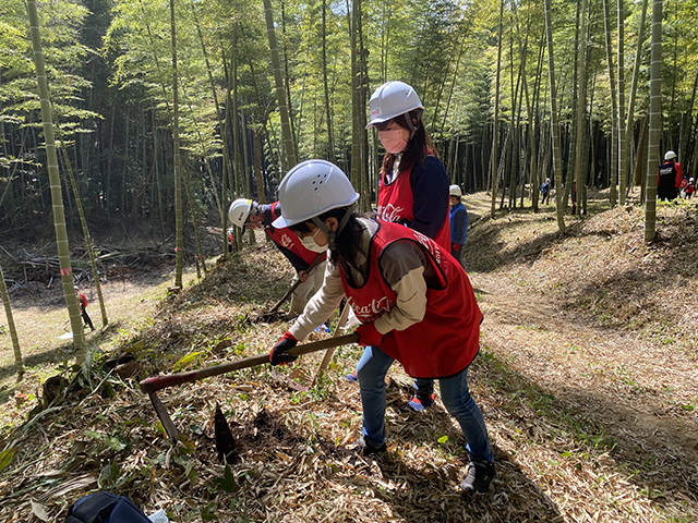 2022年4月9日、宮崎県えびの市の「水源の森 えびの」にて、3年ぶりとなる森林保全活動、コカ・コーラ「森に学ぼう」プロジェクトinえびのを開催しました。
