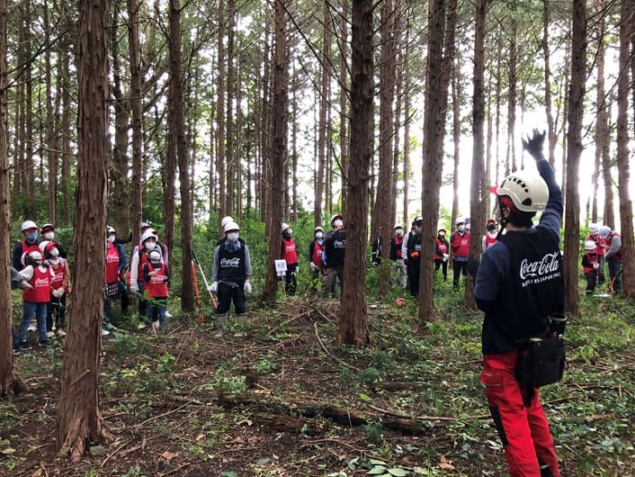 コカ・コーラ「森に学ぼう」プロジェクトは、コカ・コーラシステムが2006年より、水資源保護活動の一環として開催している環境保護・環境教育のプログラムです。森林保全のための間伐や植林、木工製作、ネイチャープログラムなどを体験する中で、森や生きものと触れ合いながら、「自然や水の大切さ」や「人と自然のかかわり」、 「環境保護の意義」を理解していただくことを目的としています。
