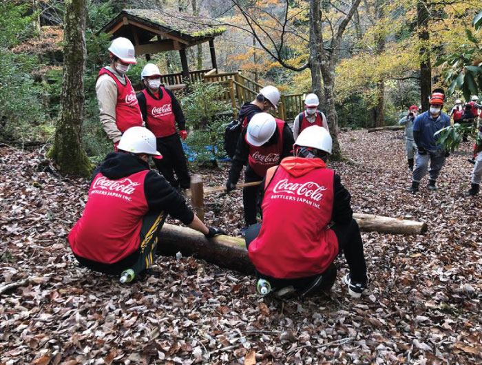 コカ・コーラ「森に学ぼう」プロジェクトは、コカ・コーラシステムが2006年より、水資源保護活動の一環として開催している環境保護・環境教育のプログラムです。森林保全のための間伐や植林、木工製作、ネイチャープログラムなどを体験する中で、森や生きものと触れ合いながら、「自然や水の大切さ」や「人と自然のかかわり」「環境保護の意義」を理解していただくことを目的としています。新型コロナウイルス感染拡大防止のため、2020年より休止していましたが、今年3年ぶりに行うことができました。