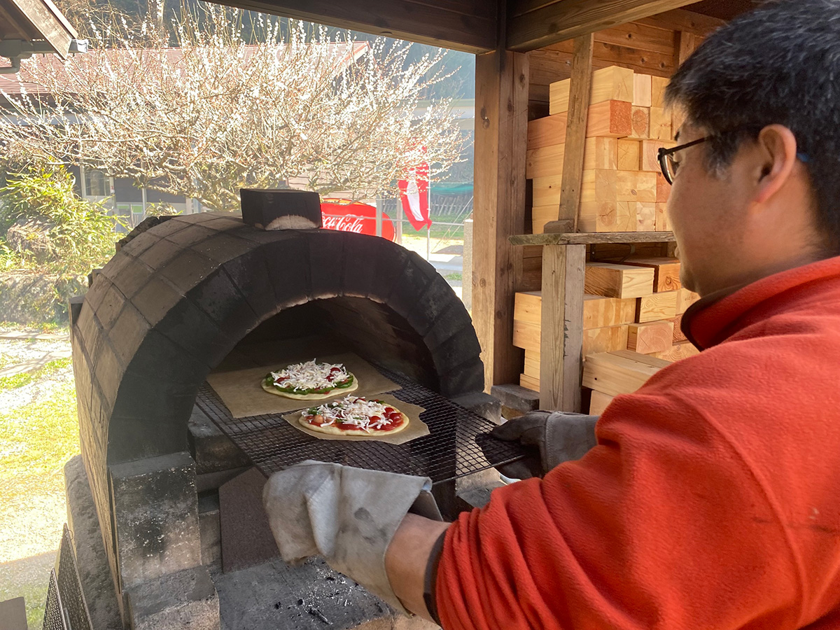 小松工場および周辺オフィスの社員とご家族など22名が参加し、愛媛県の石鎚山ふもとにある「石鎚ふれあいの里」にて、間伐材を使ったキーホルダー制作や、里山の食材を使ったピザづくり、里山のいきものを探すフィールドビンゴなどを行いました。