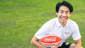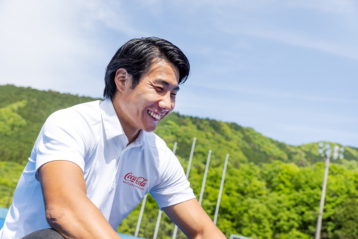 津岡:僕にとって、「コカ・コーラ」ブランドは「恩返しをする相手」です。ラグビー選手として当社に入社するとき、僕は学生時代の大きなけがが完治していなくて、プレーができるかどうかさえ分からない状態でした。それでも採用担当の方は「ラグビーだけじゃない、津岡さんの人間性を評価したんです」といって予定通り迎え入れてくれました。それ以降もたくさんの仲間に僕の活動を応援してもらい、本当に感謝しています。