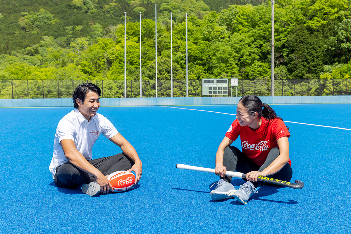 ホッケー女子日本代表の浅井 悠由(あさい ゆう)選手[1](コカ・コーラ レッドスパークスホッケー部 主将)と、7人制ラグビー(セブンズ)日本代表の津岡翔太郎(つおか しょうたろう)選手[2](コカ・コーラ ボトラーズジャパンカンパニーアンバサダー[3])。パリ2024オリンピックの開幕に向けて闘志を燃やすふたりは、ともに1996年生まれの同世代であり、「コカ・コーラ」ブランドを背負って歩んできたアスリートです。