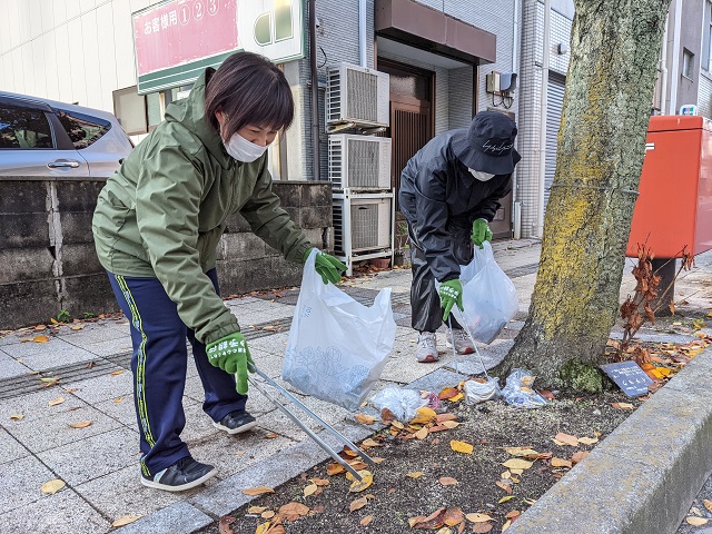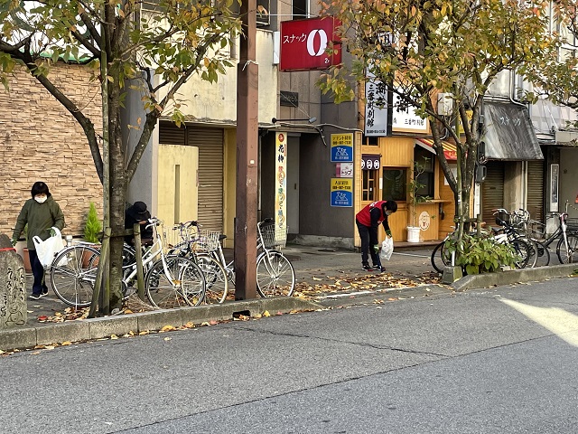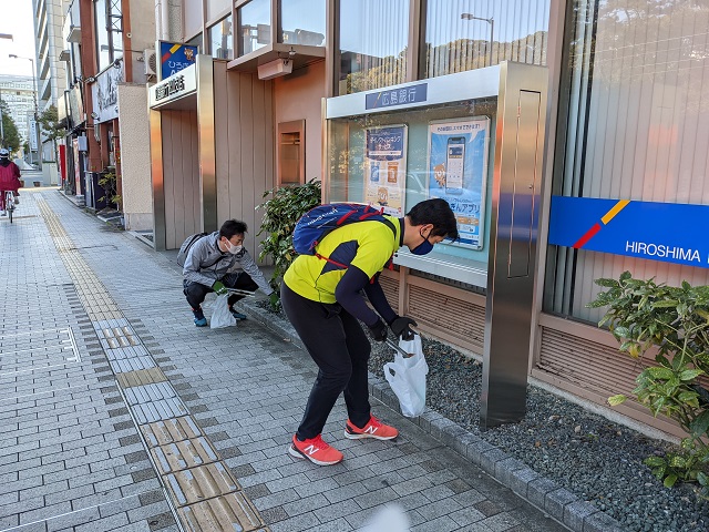 普段あまり訪れる機会がない早朝の繁華街の景色はとても新鮮でしたが、足元や植え込みに目を凝らしてみると、そこには空き缶やペットボトルが、歩道にはタバコの吸い殻などが捨てられており、それらをしっかりとPlockaUpp(ゴミ拾い)しました。