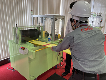ローラーに腕が巻き込まれる模擬体験