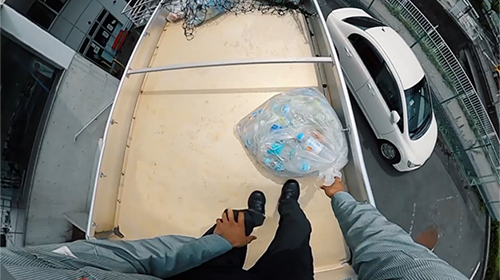 最後のパート「VRトレーニング」では、VR動画を活用し、ルートカー荷台上部からの転落や蛍光灯交換の際に脚立から転落する模擬体験を実施。VR動画は、社員がより日頃の業務との関連を意識できるよう、当社のユニホームを着用したスタントマンが出演するオリジナルの動画を導入しました。