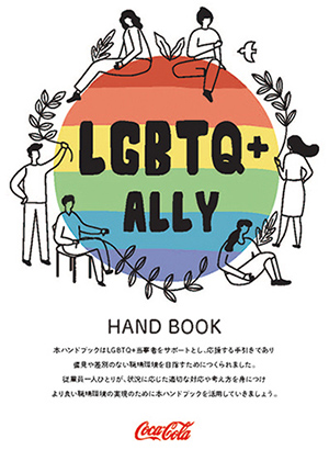 今年7月、コカ・コーラシステムは、LGBTQやAlly(アライ)についての基本的な解説や、その歴史と今の状況などをわかりやすく網羅した「LGBTQ+アライのためのハンドブック」を策定し、一斉導入しました。本ハンドブックはコカ・コーラシステム内の社員へ配布するとともに全内容をwebサイトで公開し、LGBTQへの理解促進を検討しているあらゆる企業・団体の皆さまに無償でご活用いただけるようにしています。