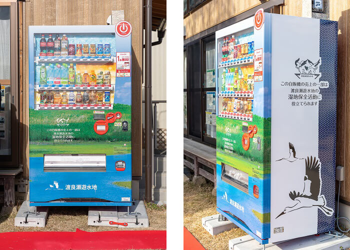 当社と小山市はSDGsの普及啓発および情報発信、SDGs推進に関する取り組みなどで連携することを目指した協定を締結し、取り組みの第一弾として「コウノトリと共生できる環境保全活動支援自販機」を、渡良瀬遊水地コウノトリ交流館に設置しました。