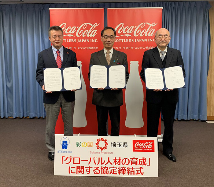 埼玉県が推進する「埼玉版SDGs」に賛同し、「埼玉県SDGsパートナー」への登録を経て、連携事業として、「埼玉県版SDGs推進自動販売機」を展開しています。さらに、「グローバル人財を育成するための協働に関する協定を、埼玉県および交易財団法人埼玉県国際交流協会と締結し、売上の一部を「埼玉グローバル人財活躍基金」に寄付しています。