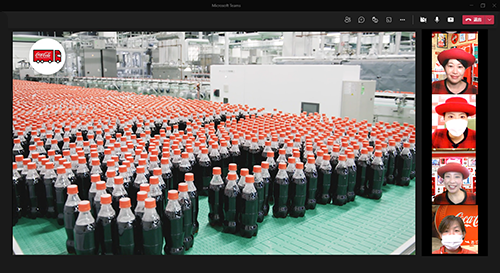 まず、製品の原材料である「水」を育む森の役割と森林を守り育てる取り組みを知ることから始まり、その後の製造ライン見学では、オンラインならではの迫力ある映像を通してコカ・コーラ社製品のおいしさの秘密や品質管理をお伝えしました。