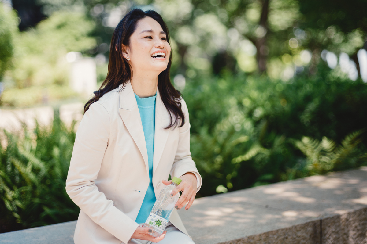 「『容器の2030年ビジョン』達成に向け、『ボトル to ボトル』を推進していく中で、日本の強みにも改めて気づくことができました。たとえば、日本のコカ・コーラシステムのサスティナビリティー素材使用率(※)は、グローバルのコカ・コーラシステムの中でも飛び抜けています。私たちが発信するナレッジはきっと世界中で生かしてもらえるはず。これからも自分の可能性に蓋をすることなく、日本はもとより、グローバルの最前線で活躍したいと考えています」