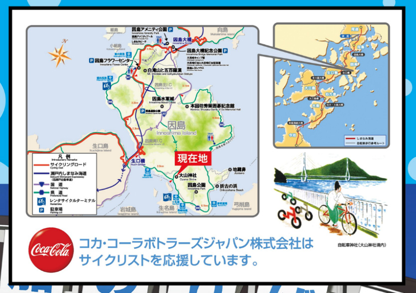 この無料化継続の一助となることを目的に、コカ・コーラ ボトラーズジャパンは、「しまなみ海道サイクリングロード支援自販機」を2020年11月末時点で9台設置し(注1)、売上金の一部を「しまなみ海道自転車道利用促進協議会広島事業本部(注2)」に寄付しています。