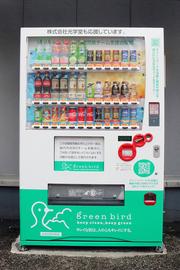 地域美化活動をサポート!鹿児島市の繁華街に「green bird鹿児島チーム支援自販機」を設置