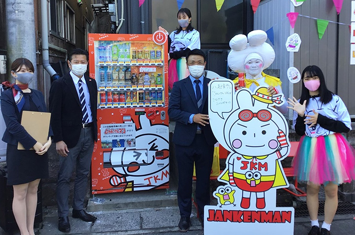 鹿児島県鹿児島市の八起食堂に、笑顔を届ける「じゃんけんマン」 ボランティア支援自販機が登場!