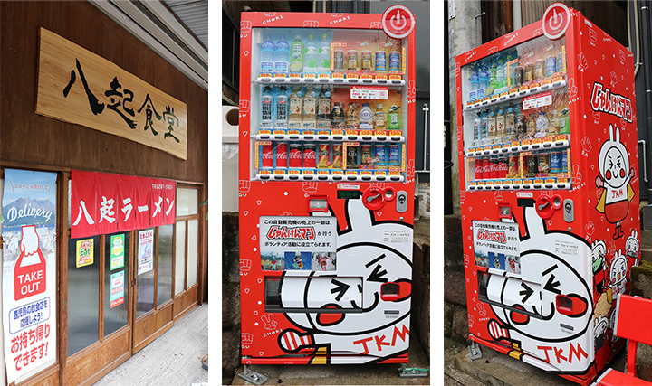 そんな「じゃんけんマン」の活動をサポートするため、このたび、鹿児島市西別府町にある「八起食堂(やおきしょくどう)」に特別ラッピングを施したボランティア支援自販機が登場しました。