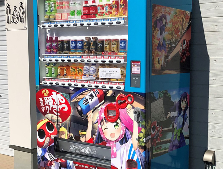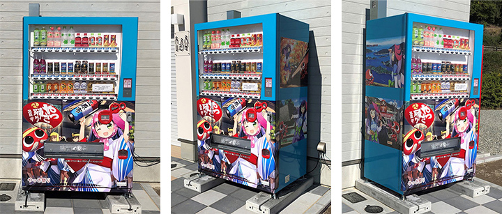 広島県三原市「空の駅オーチャード」に「ミハリンとタコじい」ラッピング自動販売機が登場!