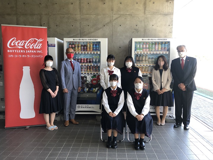 2021年10月、コカ・コーラ ボトラーズジャパンは、浜松開誠館高等学校(静岡県浜松市)とSDGs達成に向けた協働の取り組みとして、同校内に「TABLE FOR TWO自販機(以下、TFT自販機)」を設置し、共同発表会を実施しました。※TFT自販機設置に関するニュースリリースはこちら