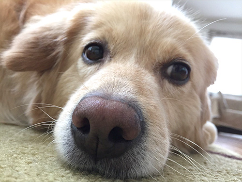 保護してから13年がたち、今ではほとんどの時間を寝て過ごしている老犬。私の帰りを楽しみに待ってくれているようで、なんだかうれしくなります。