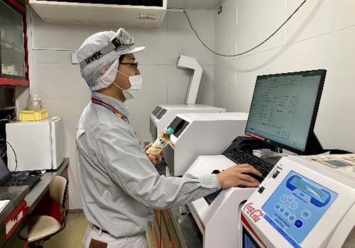 やはり自分が製造した製品を小売店などで目にするときです。製品のキャップ部分に製造日と製造工場が印字されているので一目でわかります。特にコカ・コーラ社製品では、「爽健美茶」が好きなので、自分が製造した「爽健美茶」を目にしたときは、より嬉しくハッピーを感じます!